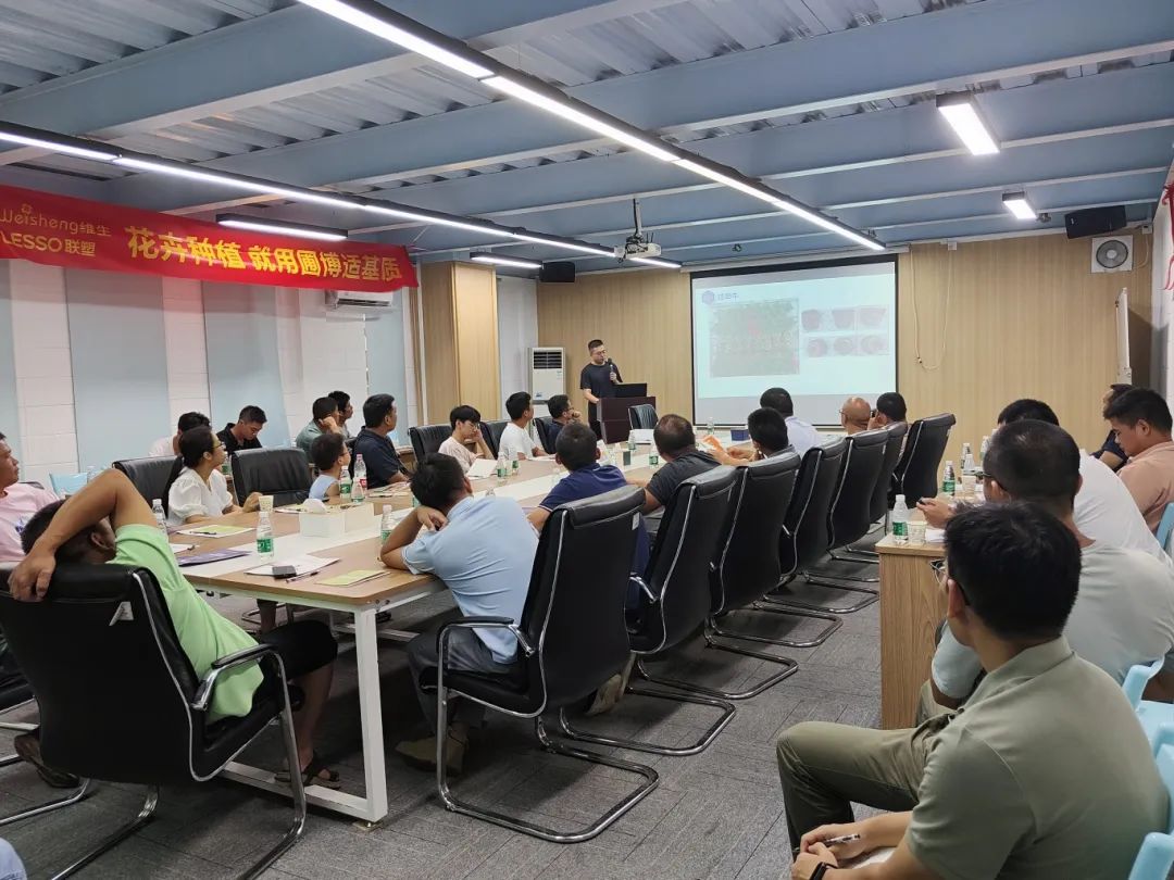 7月30日,快猫在线联塑科技公司设施农业事业部邀请广佛周边种植花卉盆栽的客户在广东快猫在线陈村总部参加一场基质和特肥快猫视频污应用技术交流会。